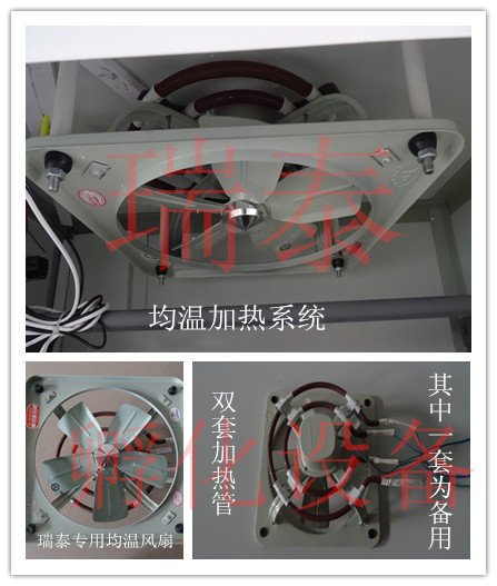 2、控溫系統(tǒng):有均溫風(fēng)扇和兩根加熱管組成,其中一根為主加熱(開(kāi)機(jī)就自動(dòng)啟動(dòng)),一根為副加熱(主加熱不能滿足機(jī)器溫度時(shí),可手動(dòng)打開(kāi)副加熱).